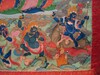 At the bottom left is the seated figure of Ekajati. On the right side is Shri Devi. The five figures along the bottom are the 'Putra Mising Nga' - the inner retinue of Panjarnata - Kala Rakshasa, Kala Rakshasi, Putra, Bhatra and Singmo.