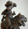 Indigenous to Tibet, the daemon Dorje Legpa was subjugated in the 8th century by Guru Padmasambhava and oath bound as a Dharma protector. His primary function is to safeguard the Revealed Treasure texts (Terma) of the Nyingma Tradition of Tibetan Buddhism.