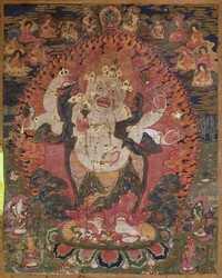 Shadbhuja Sita Mahakala, (Tibetan: gon po kar po chag drug pa. English: the White Lord with Six Hands): emanation of Avalokiteshvara and principal wealth deity of the Shangpa Kagyu Tradition of Tibetan Buddhism.