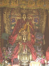 Several hundred photos of Wutaishan Mountain in China have been uploaded to the HAR website. They are not art photos per se but rather snap shots of some of the important stupas, temples, sculpture and sight locations. The mountain with its five terraces (peaks) and the narrative relating to Manjushri are important in the art of the Himalayas, Mongolia, Tibet and Nepal. In the principal valley is a large white stupa made by the famous Nepalese artist Aniko. It is also stated in the recorded literature that Chogyal Pagpa himself assisted in the physical construction of the stupa. All of this was during the time of Kublai Khan. It would be a huge task to document and photograph all of the major and minor sites and probably take more than a week to conduct a traditional pilgrimage even with the use of a motor vehicle.